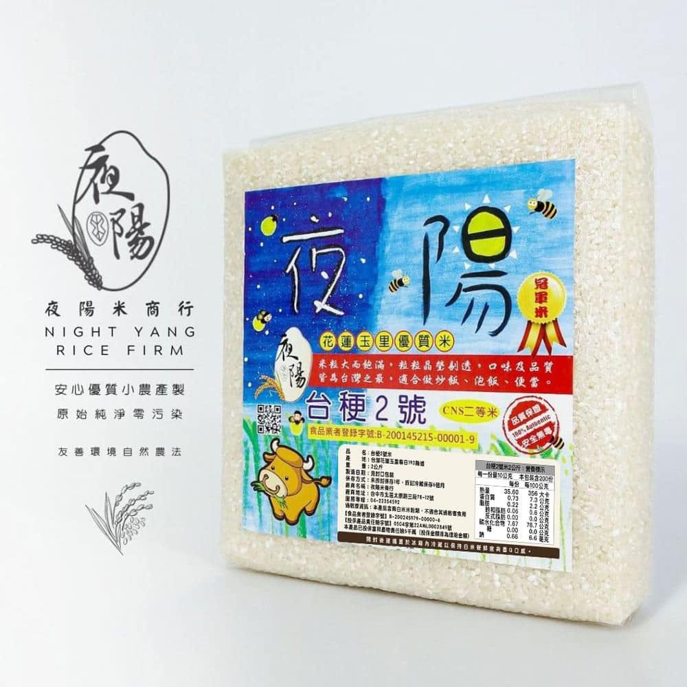 她將品牌命名為「夜陽米商行」。夜陽,是她姓氏「楊」的諧音;「夜」象徵農夫日夜耕耘的勤奮,「陽」代表著期望與豐收。Logo則由她的小女兒親手繪製,一顆可愛的米粒公仔成為品牌視覺,一看就讓人記住。