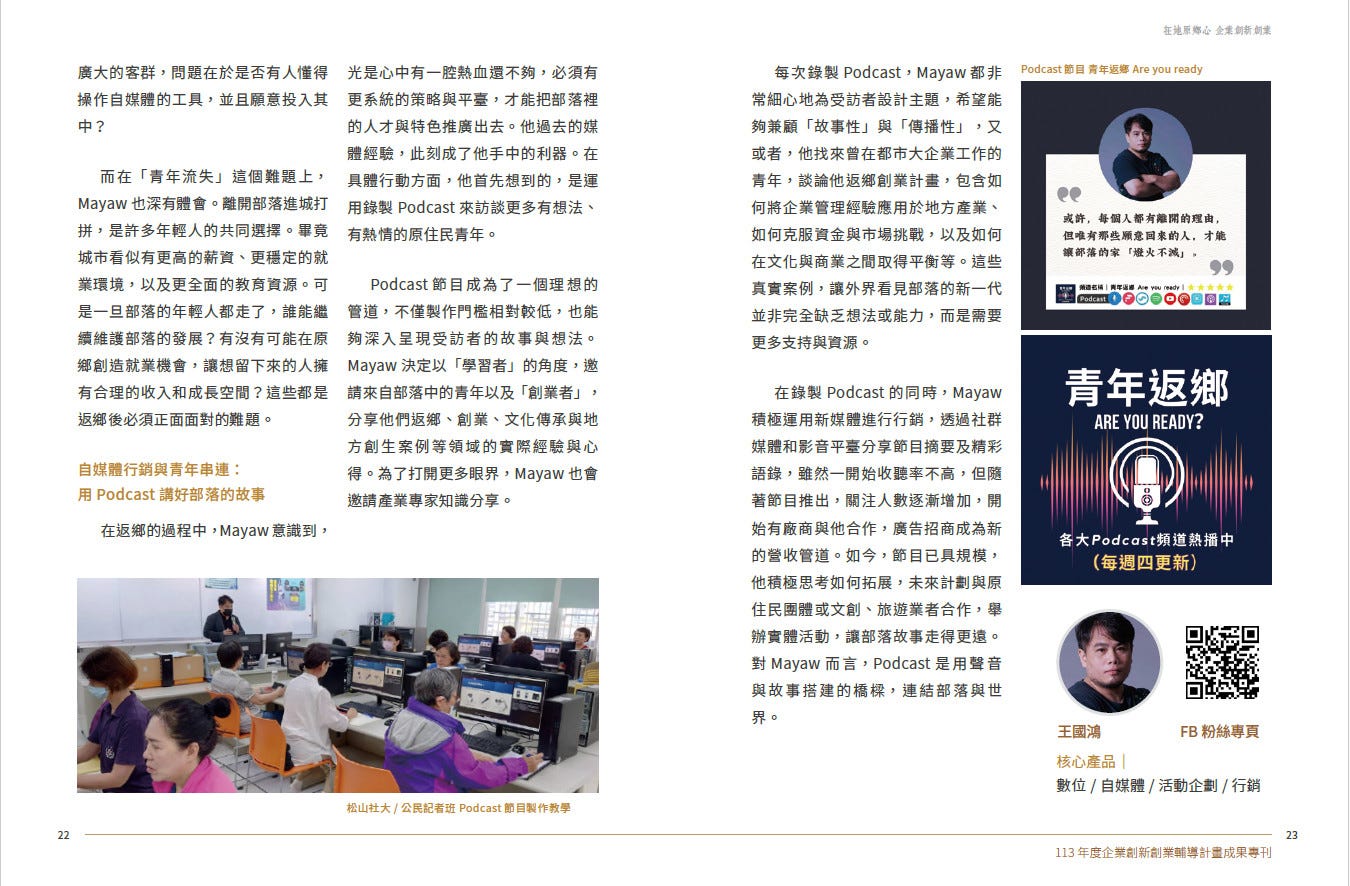 原民會「創業先導計畫專刊」訪談,對我而言,是一種肯定,也是一種提醒。