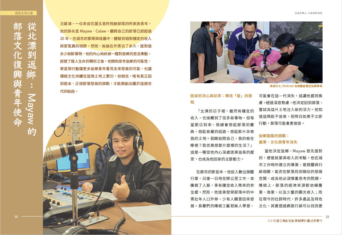 當我回頭看著自己製作節目的歷程,才發現這條路早已悄悄連結起許多返鄉的青年,也吸引了不少非原民的朋友,一起關注、理解並認同我們的文化。這次能被收錄在原民會的成果專刊裡,彷彿有人輕聲對我說:「你沒有白走這條路,你的堅持,有人看見。」